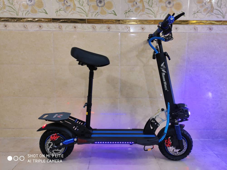 اسکوتر برقی دونفره ROHAN WINGS روهان وینگز موتور ۲۰۰۰ وات مدل R5 رنگ آبی blue موتور براشلس آلمان