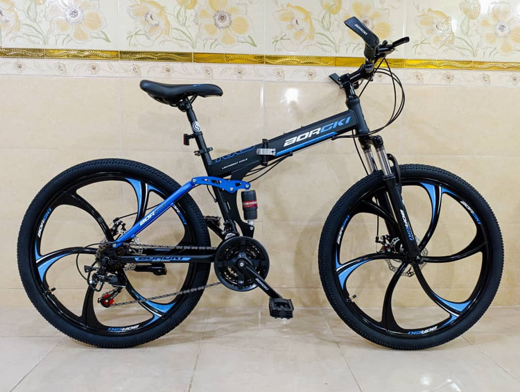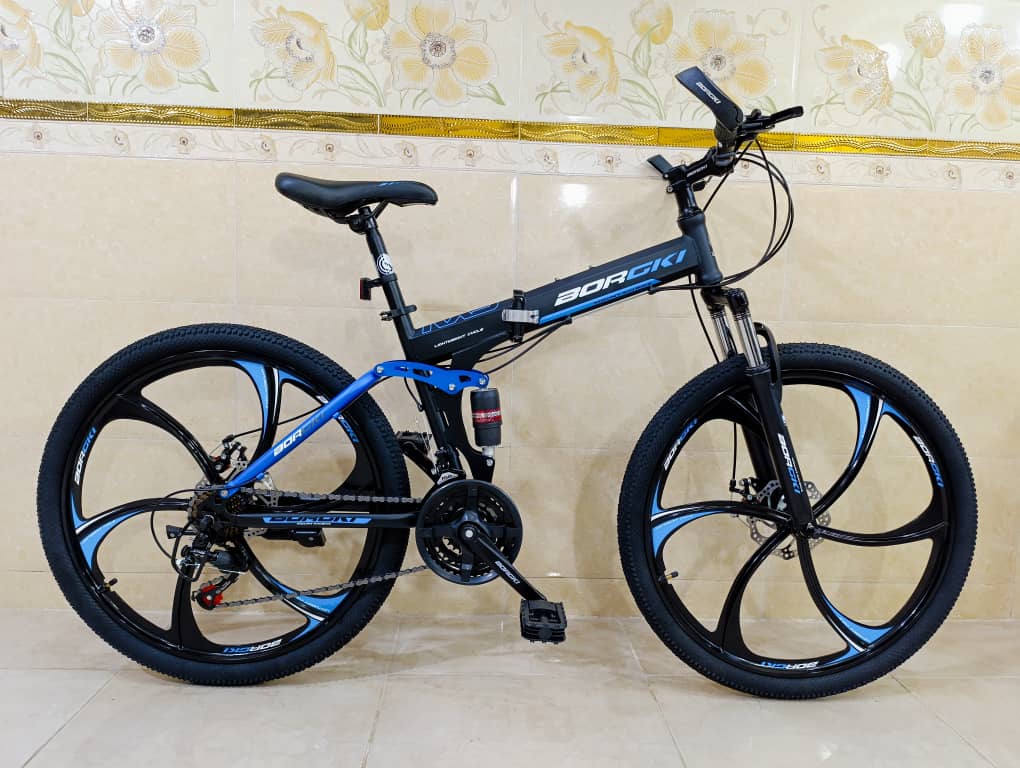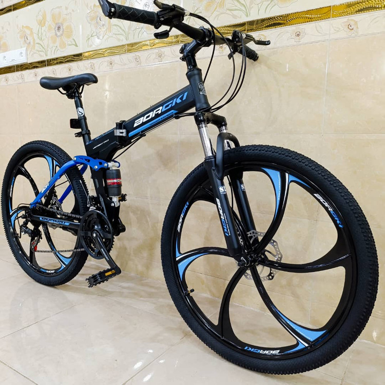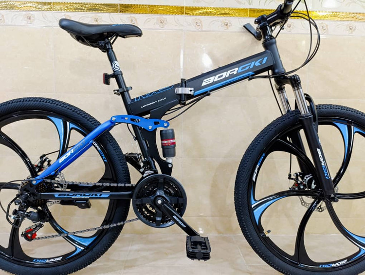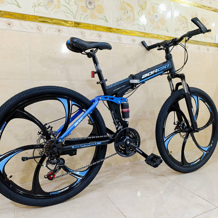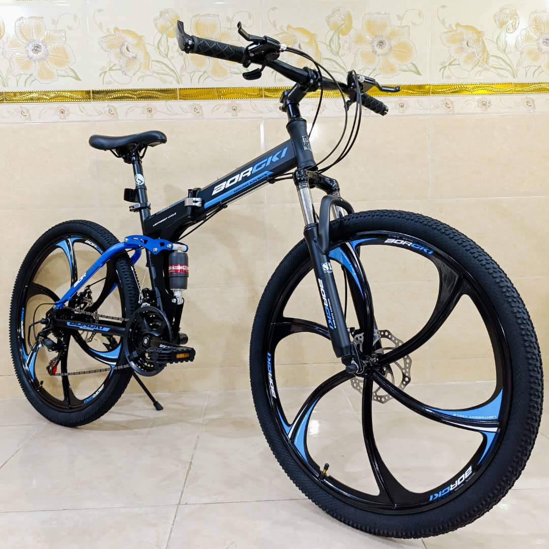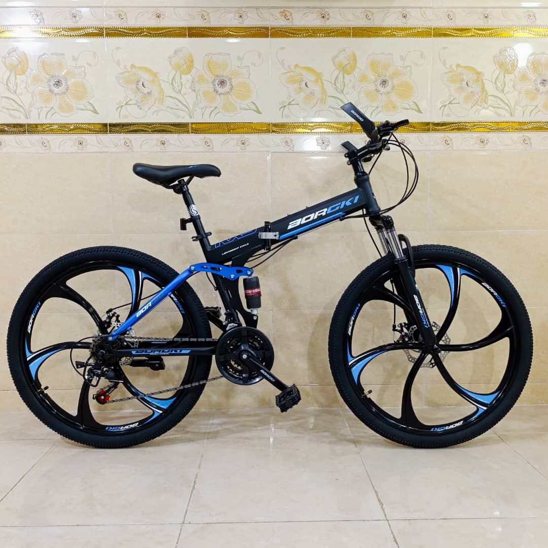 دوچرخه تاشو سایز ۲۶ BURGKI رینگ ۶ پره رنگ آبی ( سفارش خلیج )