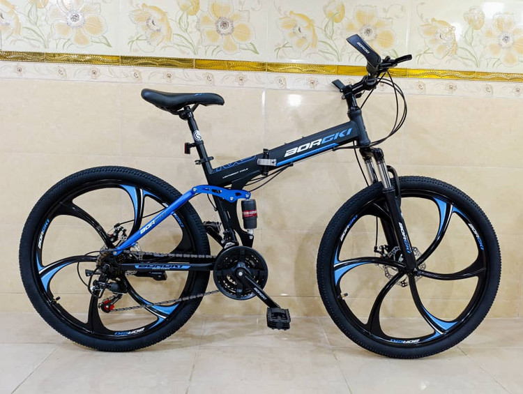 دوچرخه تاشو سایز ۲۶ BURGKI رینگ ۶ پره رنگ‌ آبی ( سفارش خلیج )
