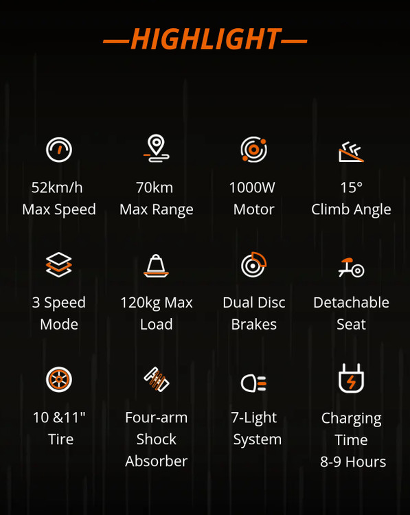 قابلیت پیمایش حدودا ۷۰ کیلومتر که بستگی به وزن شخص و مسیر جاده متفاوت میباشددارای صفحه نمایش دیجیتال بزرگ در وسط فرمان