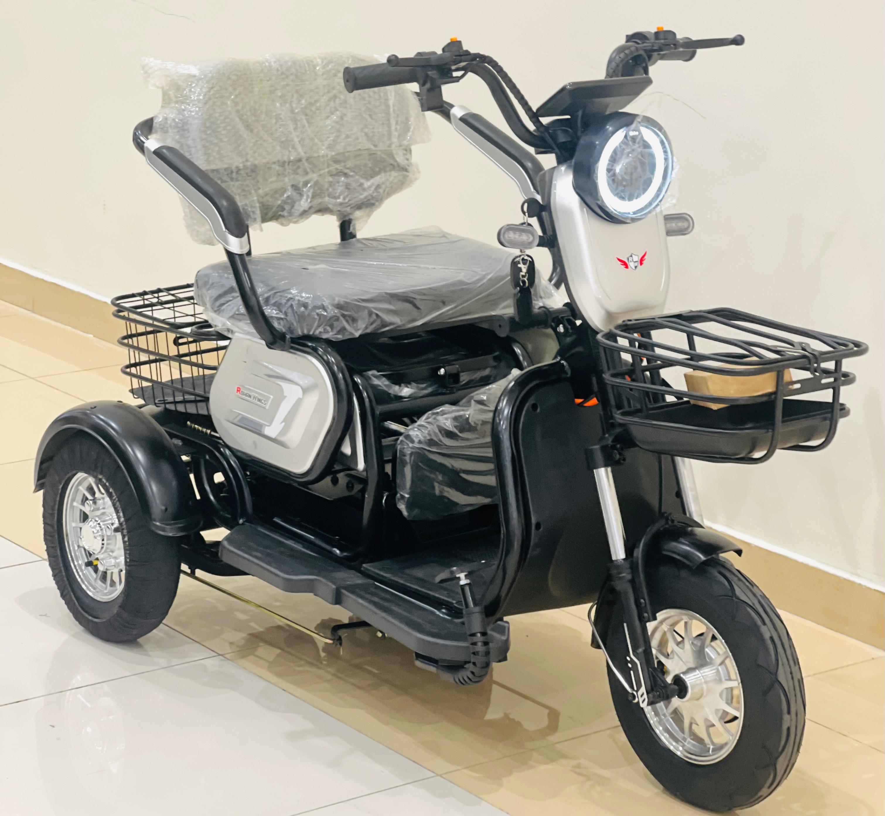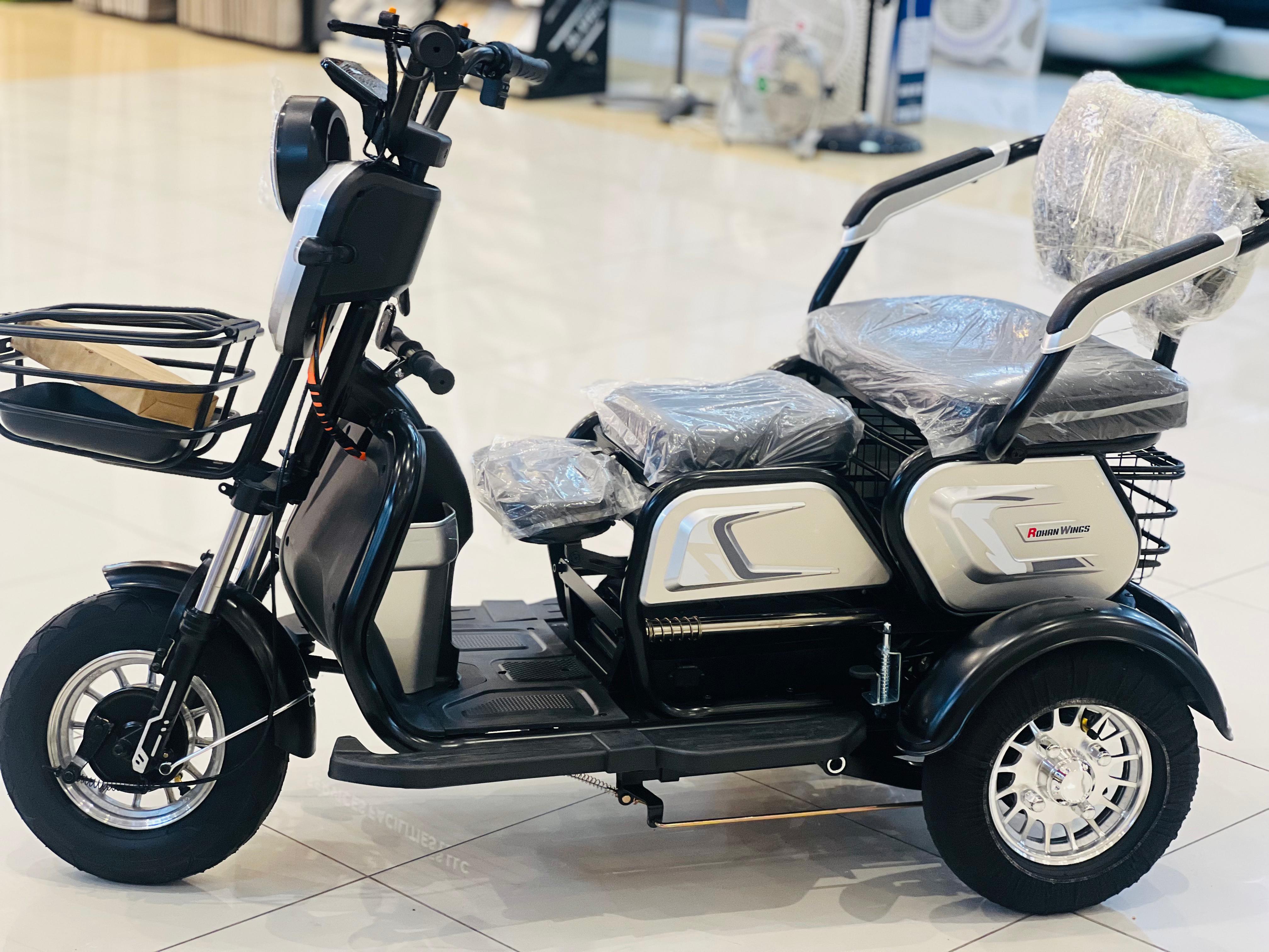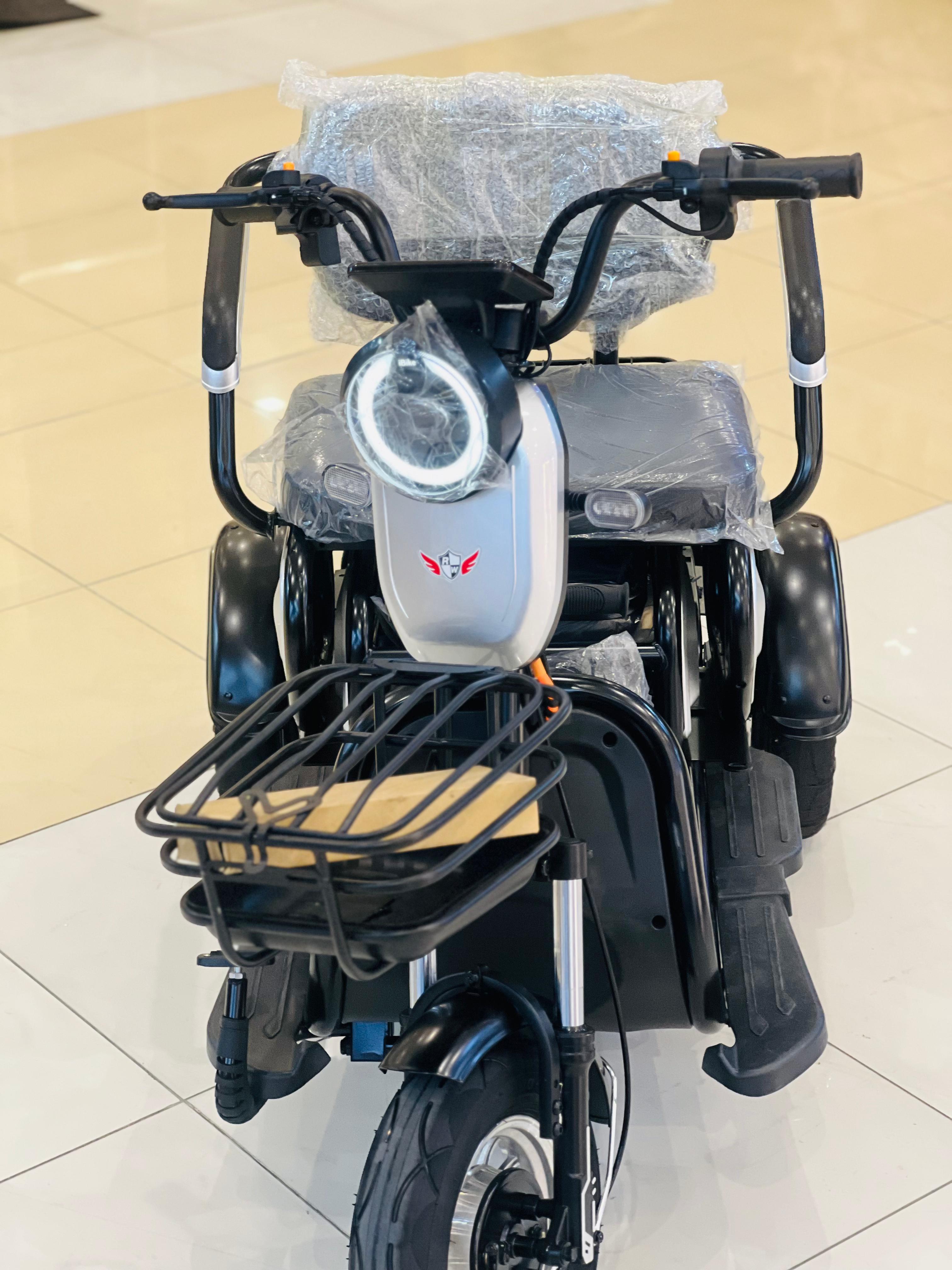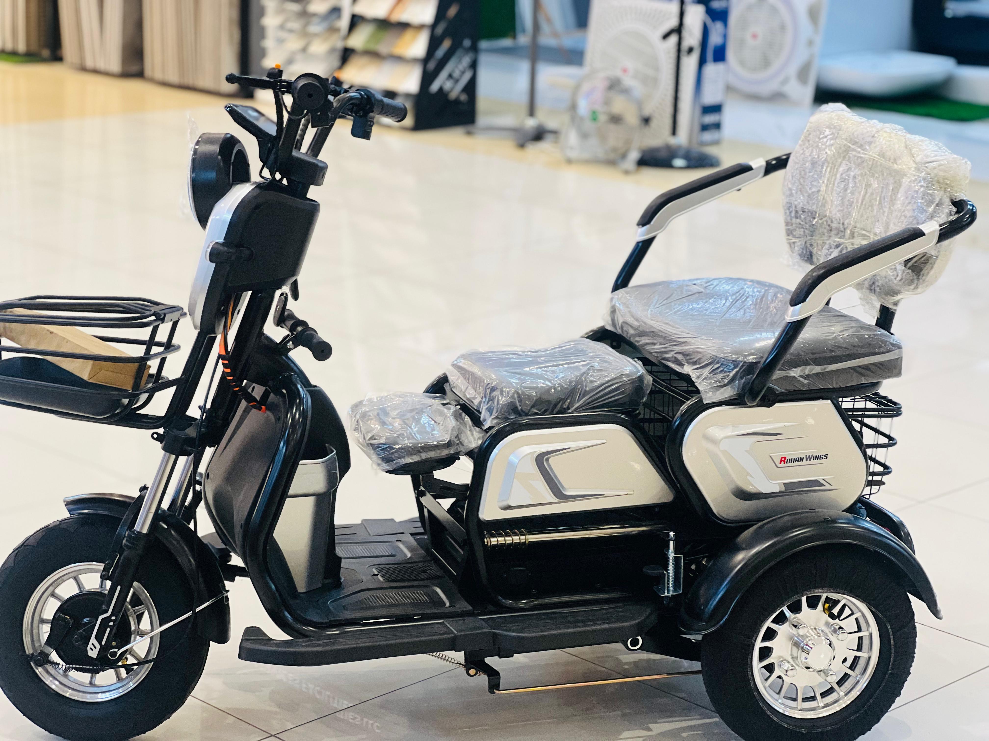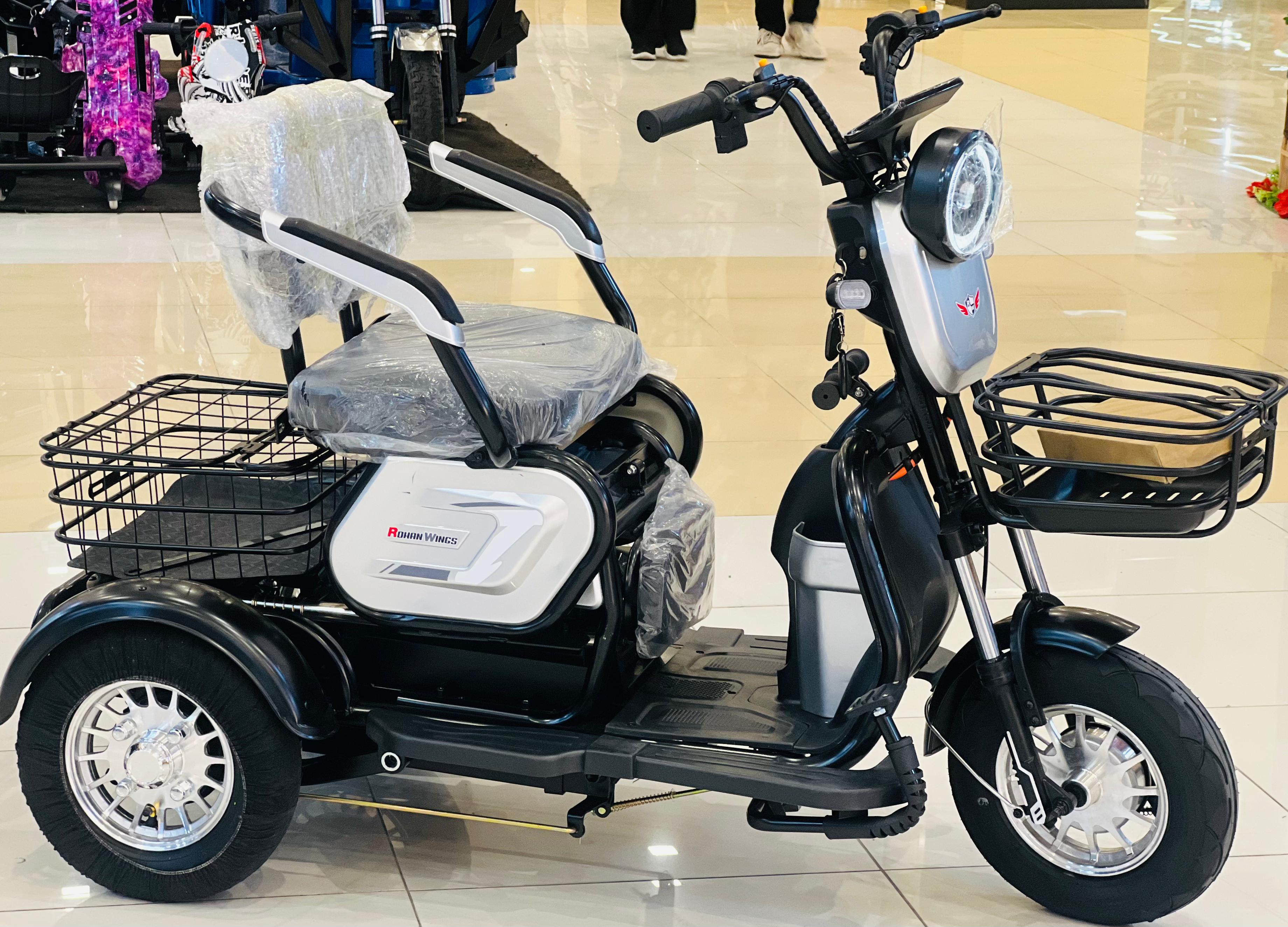 سه چرخه برقی ( سه چرخ ) بزرگسال ROHAN WINGS سه نفره رینگ استیل رنگ نقره ای ( موجود )